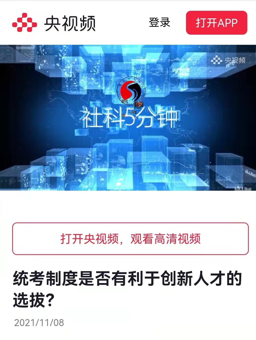2021年11月8日,“社科5分钟”节目首次登上“央视频”,由此,作为专门普及社会科学的“社科5分钟”将借助中央广播电视总台“央视频”这一短视频平台进一步扩大其影响。