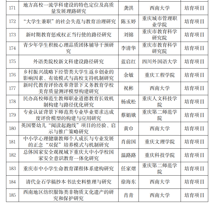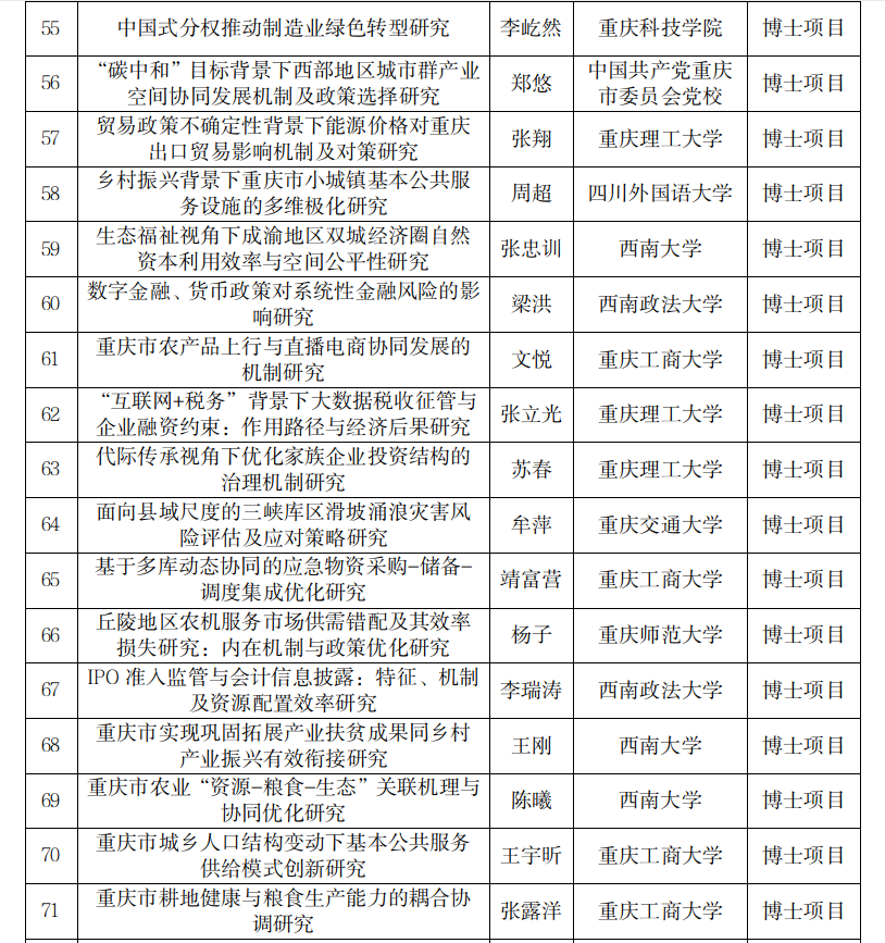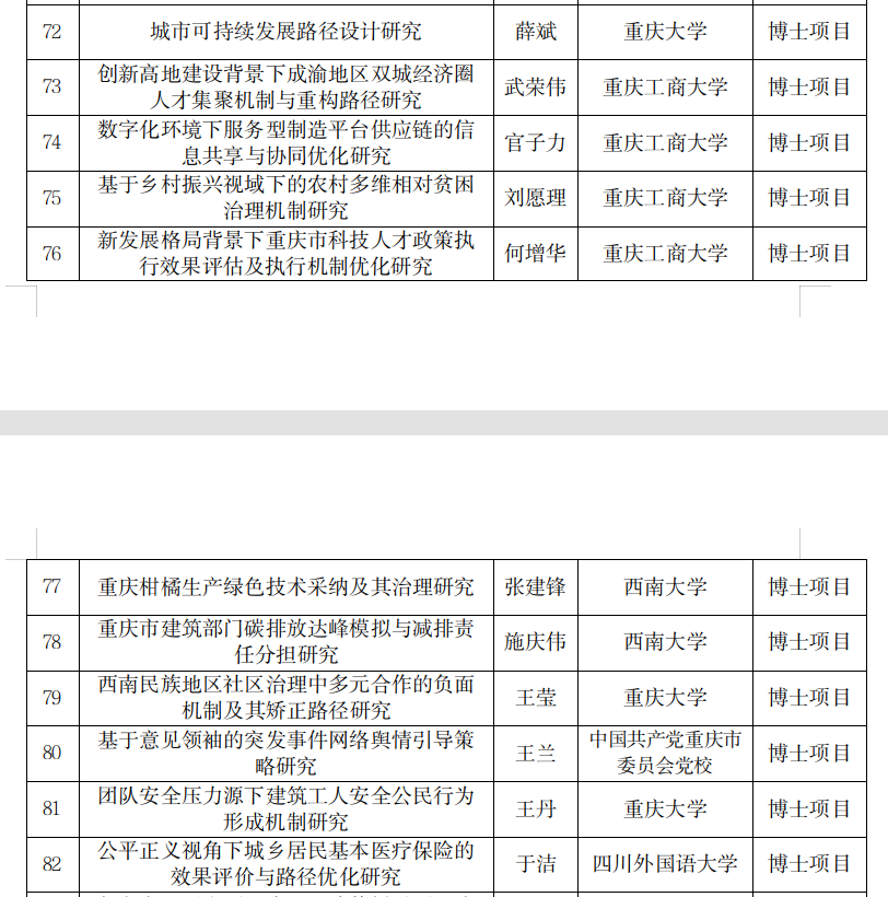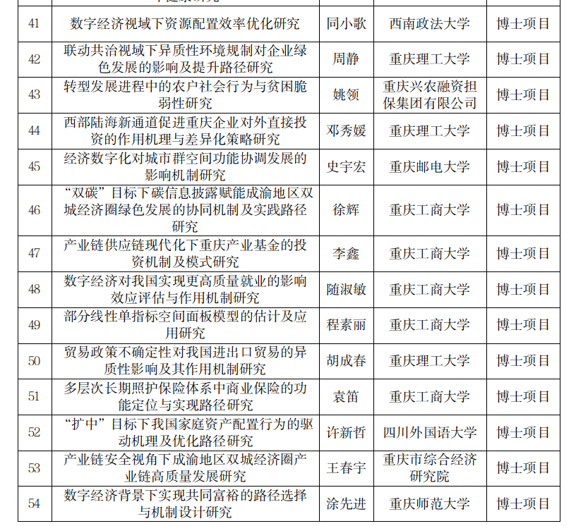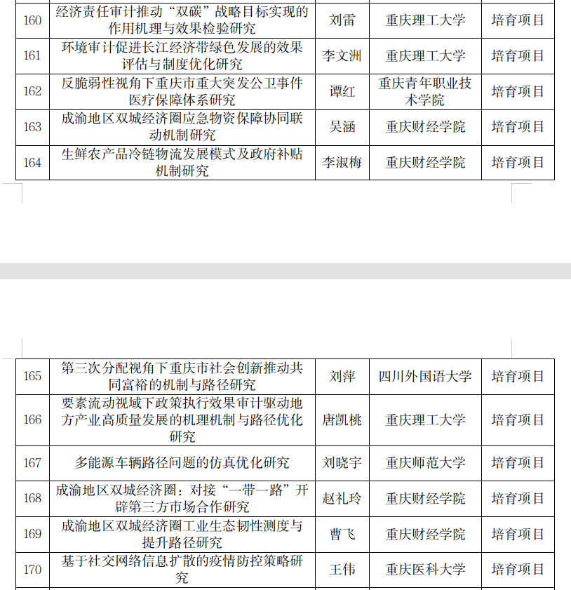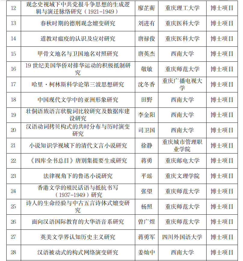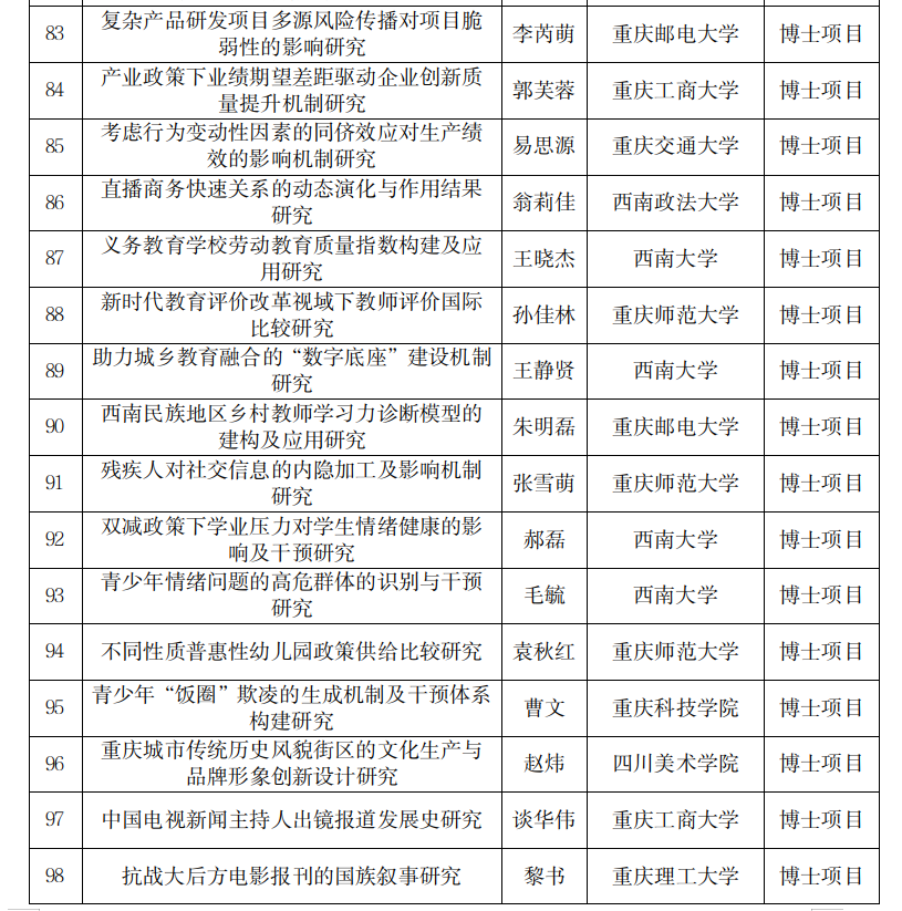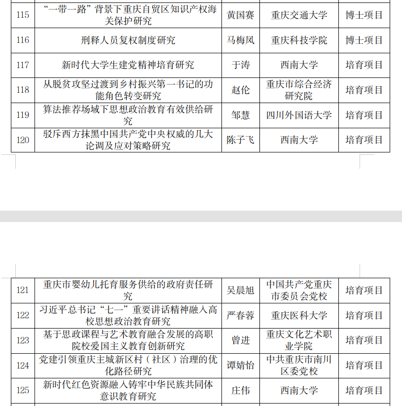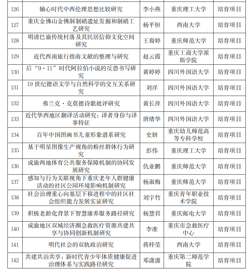 2021年度重庆市社会科学规划博士和培育项目立项名单