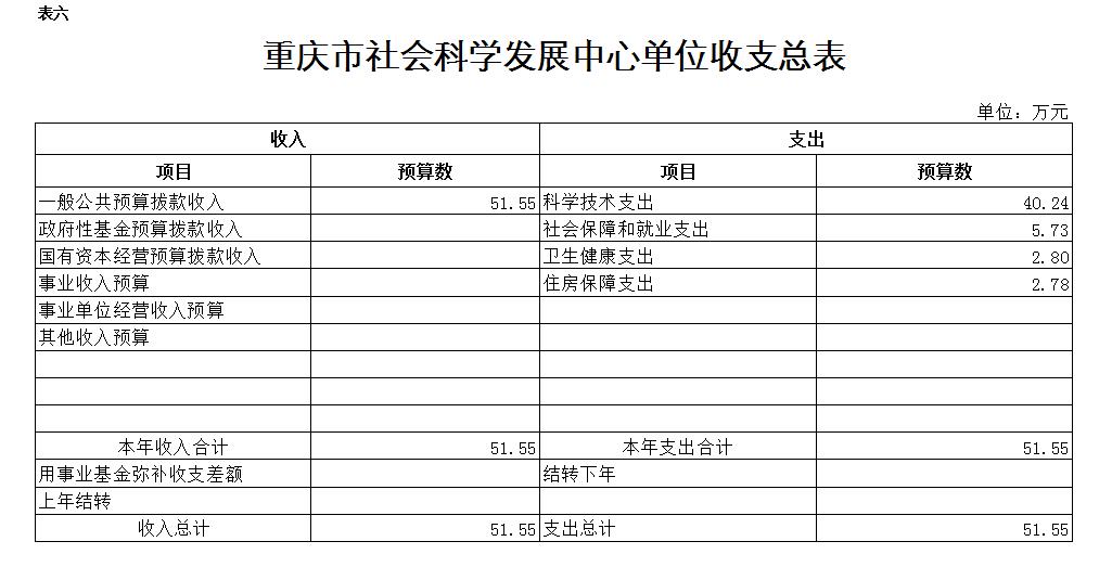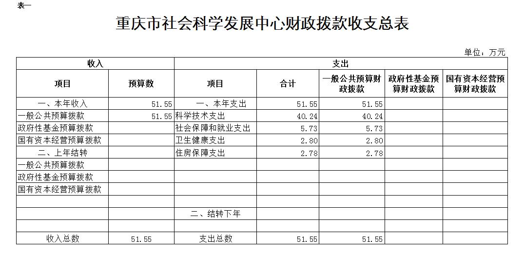 2021年一般公共预算财政拨款收入51.55万元,一般公共预算财政拨款支出51.55万元,比2020年增加51.55万元。其中:基本支出51.55万元,比2020年增加51.55万元,主要原因是2021年以前未纳入预算,无财政拨款收入,主要用于保障在职人员工资福利及社会保险缴费,保障单位正常运转的各项商品服务支出等;市社科发展中心2021年无项目支出预算。