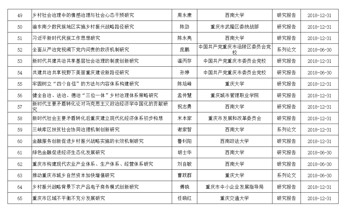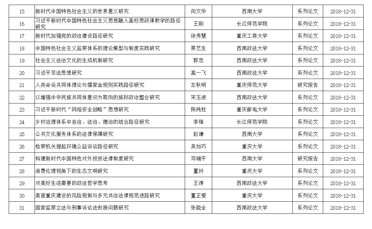 2017年重庆市社科规划“研究阐释党的十九大精神”项目立项名单