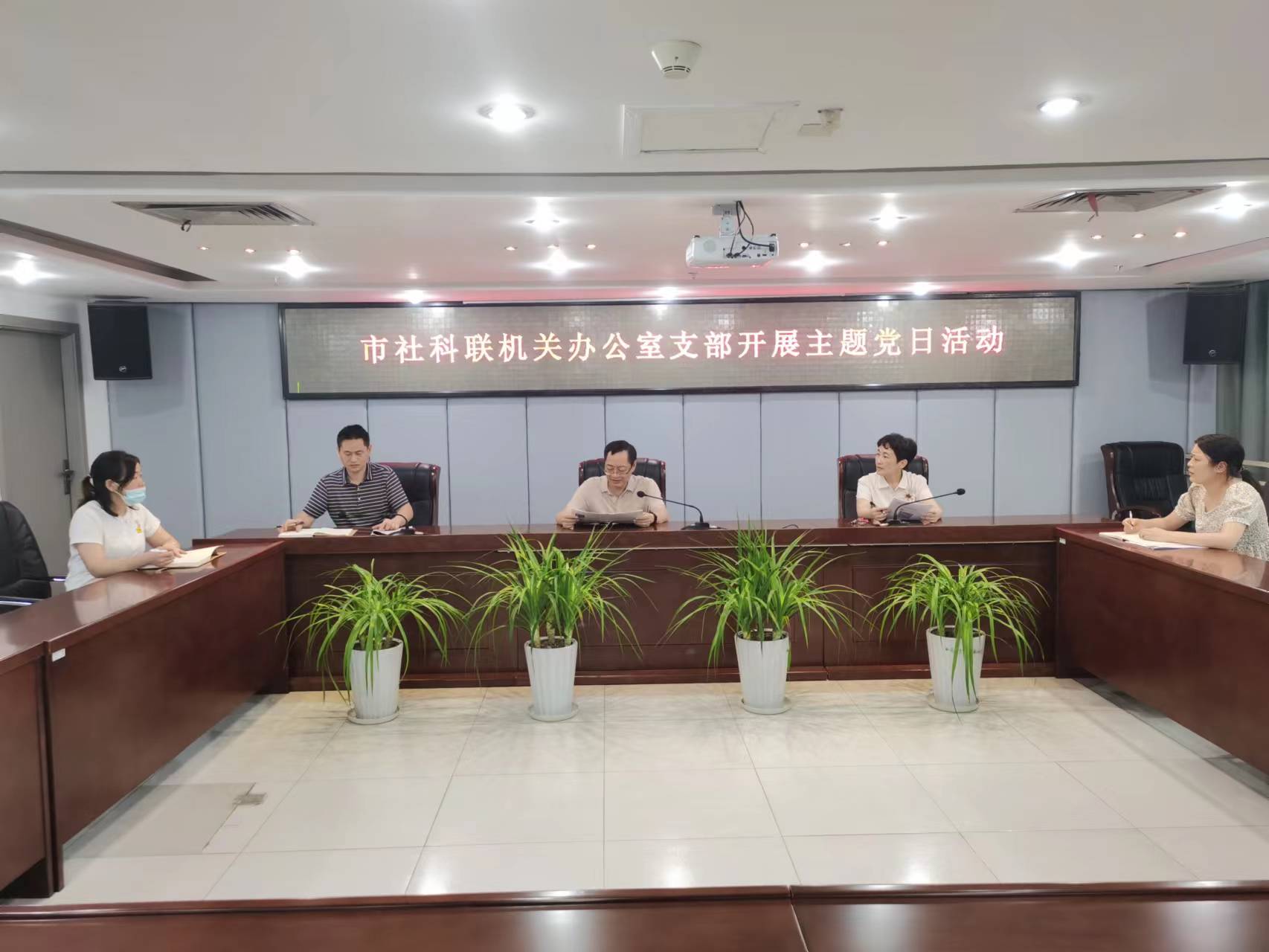 2022年7月18日上午,市社科联机关办公室党支部在2809会议室开展主题党日活动,学习有关会议、文件精神。支部书记杨晓燕主持。