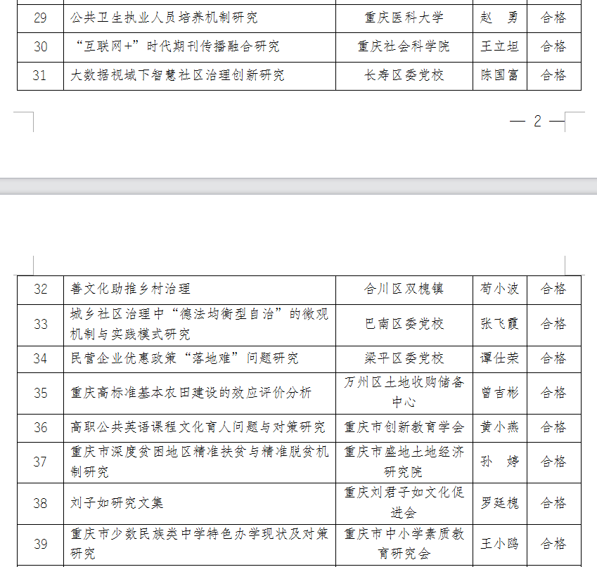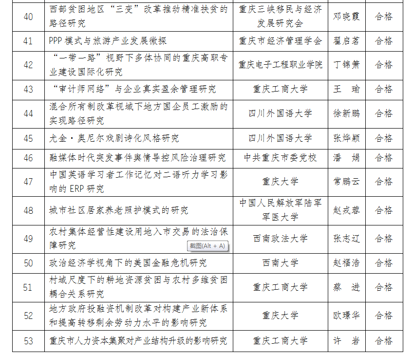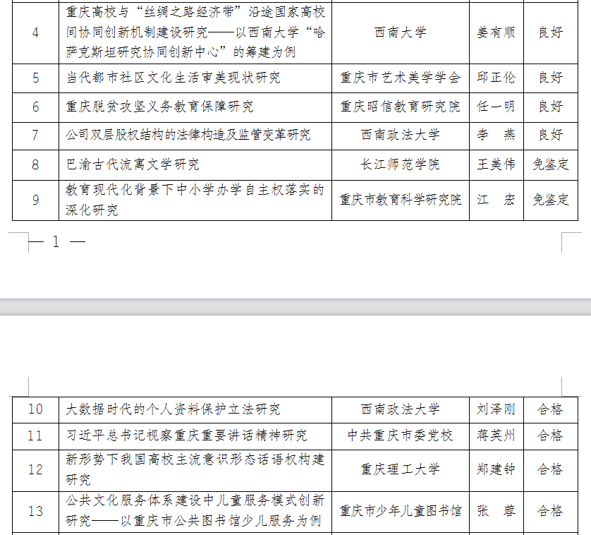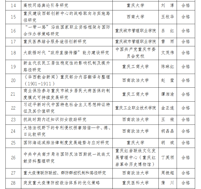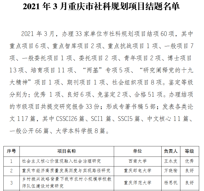 2021年3月重庆市社科规划项目结题名单